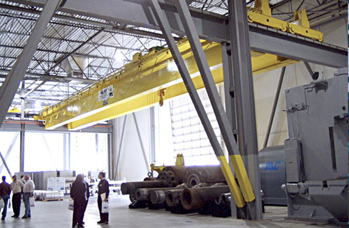 通常,顶部运行桥式起重机的双梁系统利用两根梁作为桥梁结构,以及一个横穿安装在两根桥梁顶部的轨道的提升小车单元。葫芦的吊钩“落在”两根桥梁之间。通过利用这种起重机/起重机配置,可以增加起重机下方的净空。起重机/小车的变体可以配置连接到桥梁底部的下悬式起重机小车单元。